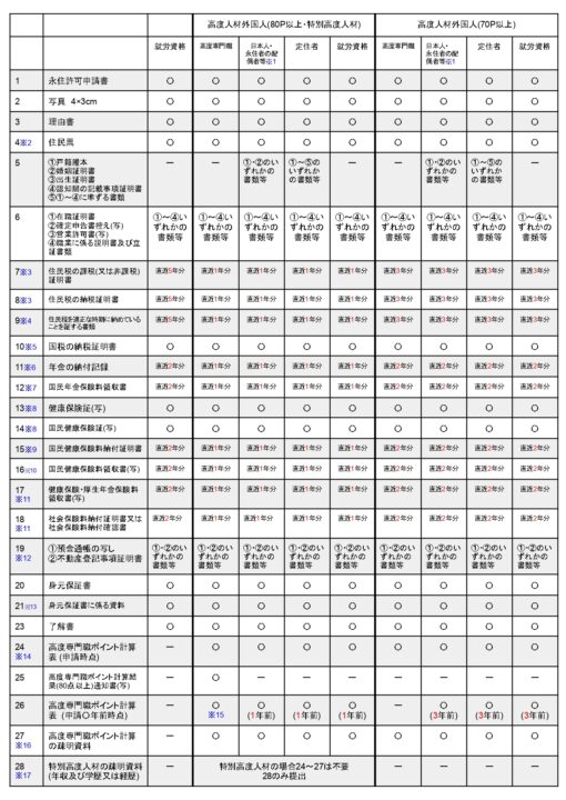 ※15 高度専門職ポイント計算結果通知書により80点以上を有する旨の通知を受けていない場合提出(1年前時点)